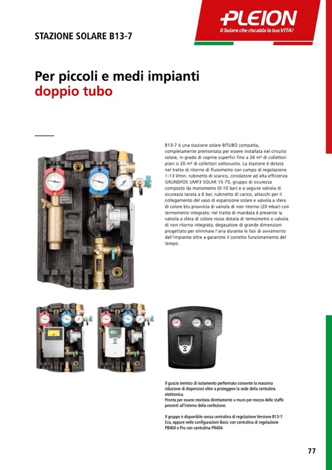 Il gruppo è disponibile senza centralina di regolazione Versione B13-7