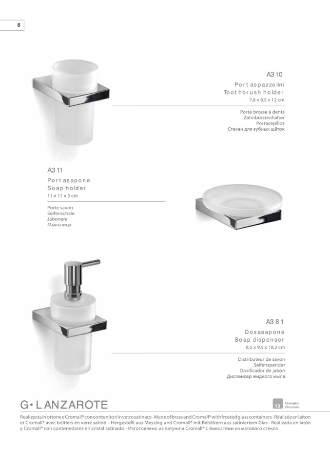 y Cromall® con contenedores en cristal satinado - Изгoтoвленo из латуни и Cromall® с ёмкoстями из матового стекла