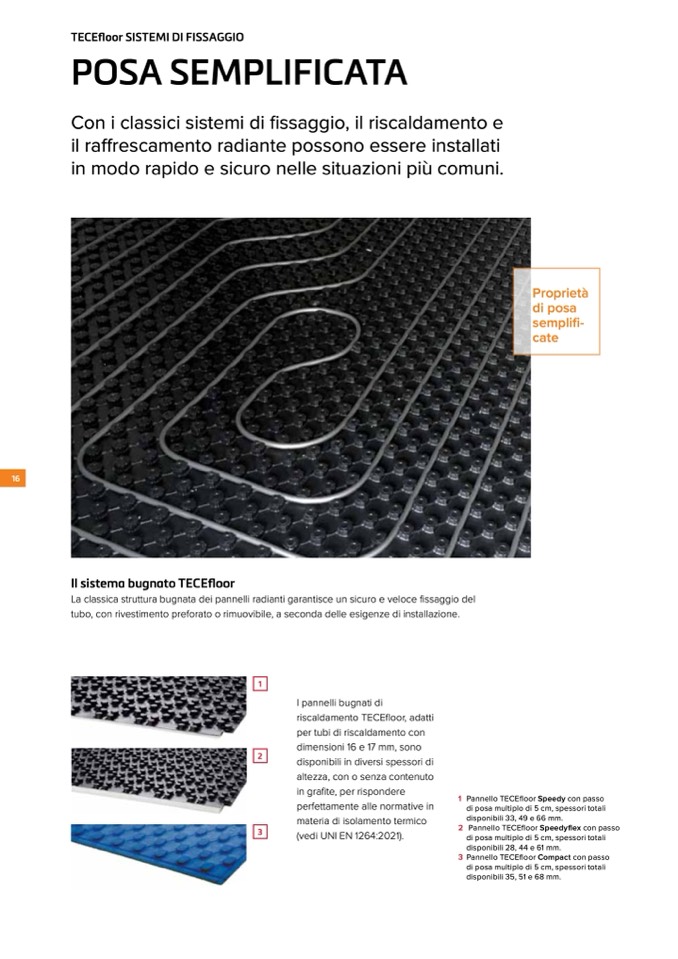 La classica struttura bugnata dei pannelli radianti garantisce un sicuro e veloce fissaggio del