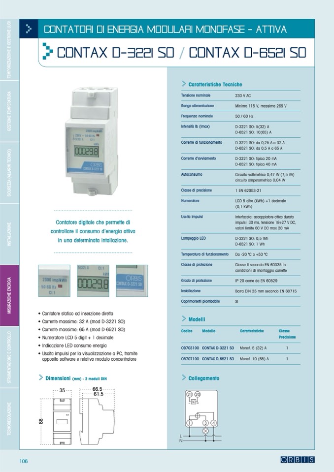 • Uscita impulsi per la visualizzazione a PC, tramite