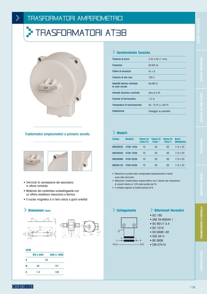 Trasformatori amperometrici a primario avvolto.