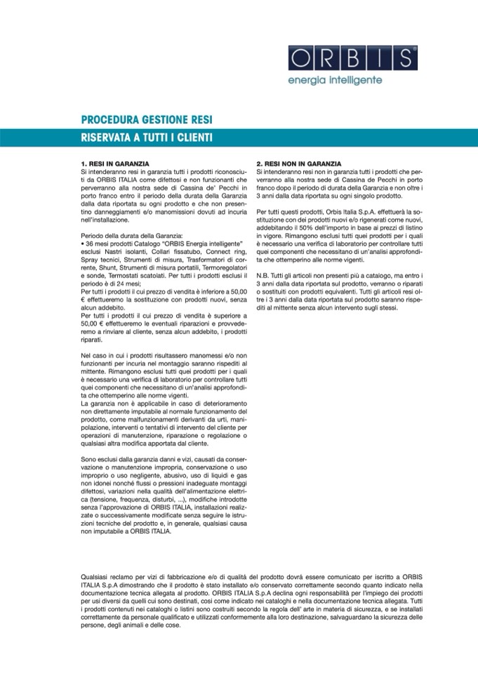 del prodotto dovrá essere comunicato per iscritto a ORBIS