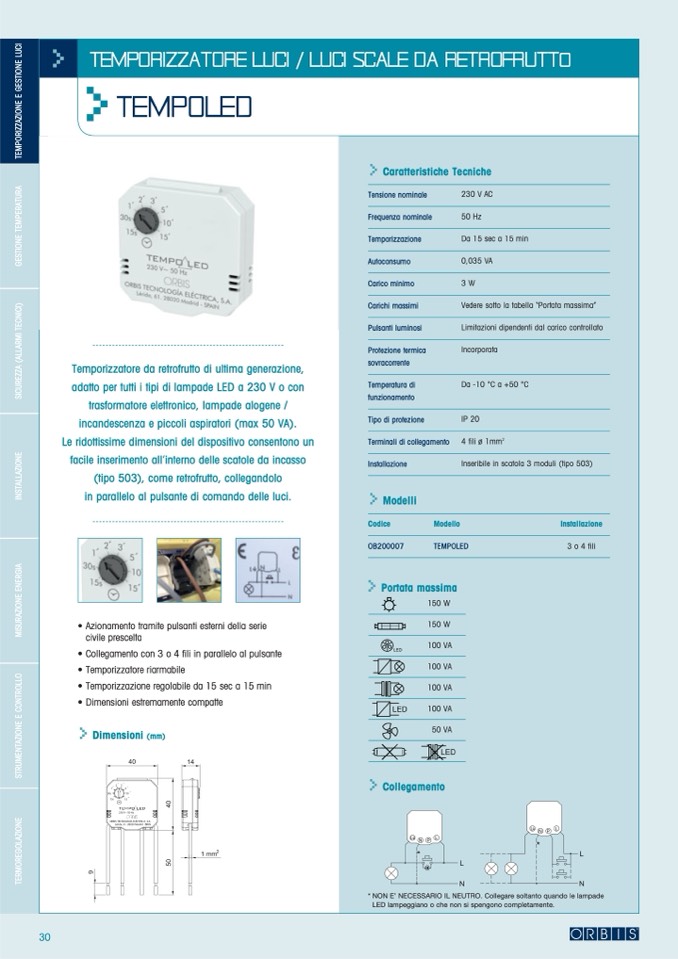 • Temporizzazione regolabile da 15 sec a 15 min
