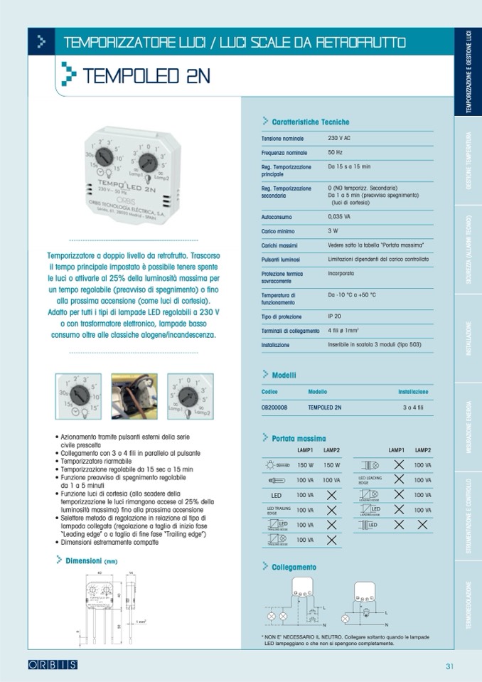 • Temporizzazione regolabile da 15 sec a 15 min