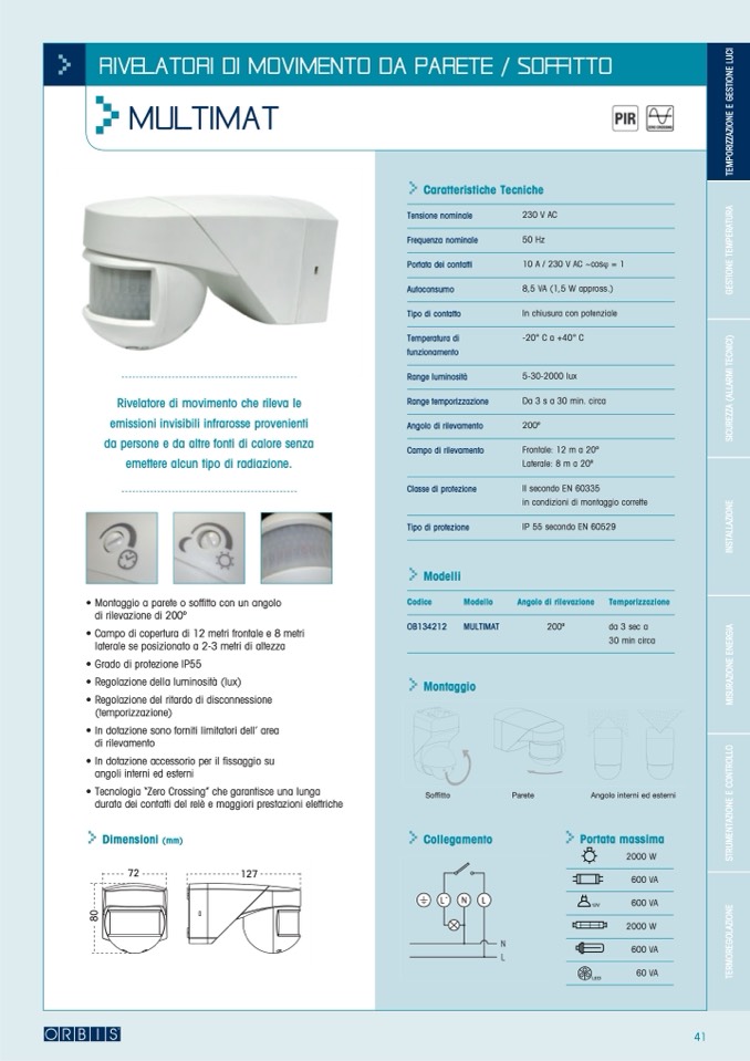 • Regolazione della luminosità (lux)