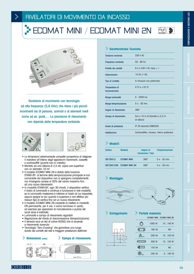 • Luminosità e campo di rilevamento regolabili