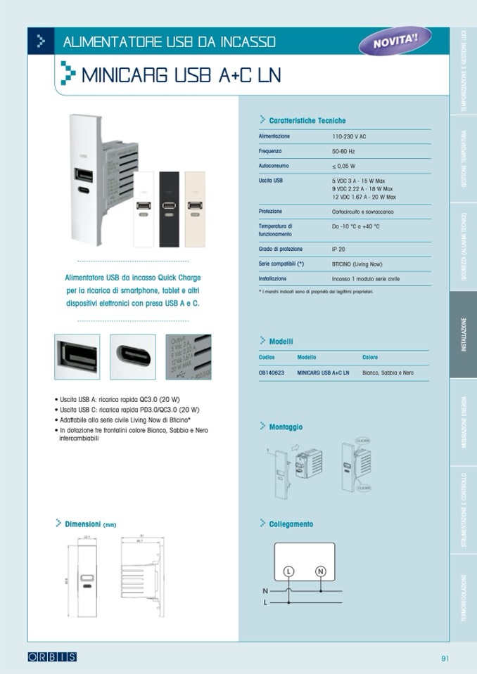 • Uscita USB A: ricarica rapida QC3.0 (20 W)