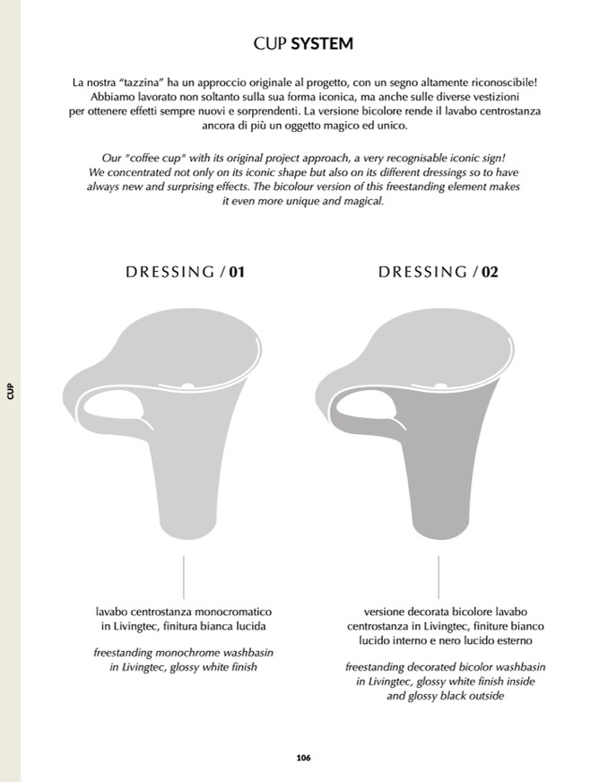 per ottenere effetti sempre nuovi e sorprendenti. La versione bicolore rende il lavabo centrostanza