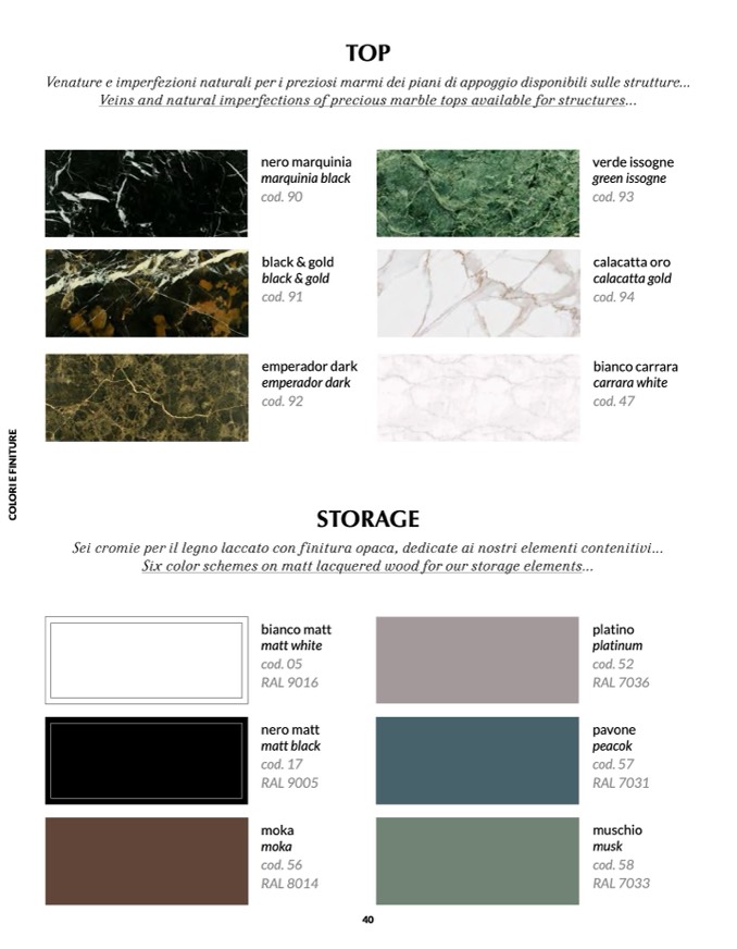 Venature e imperfezioni naturali per i preziosi marmi dei piani di appoggio disponibili sulle strutture...