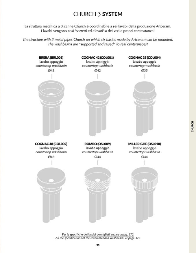All the specifications of the recommended washbasins at page 372