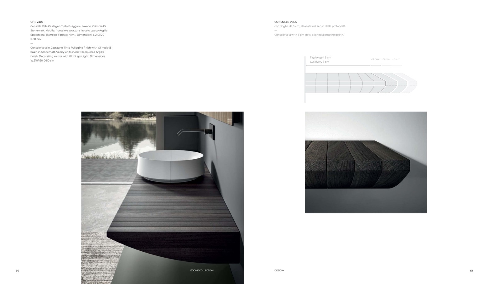 Consolle Vela Castagno Tinto Fuliggine. Lavabo: Olimpia45