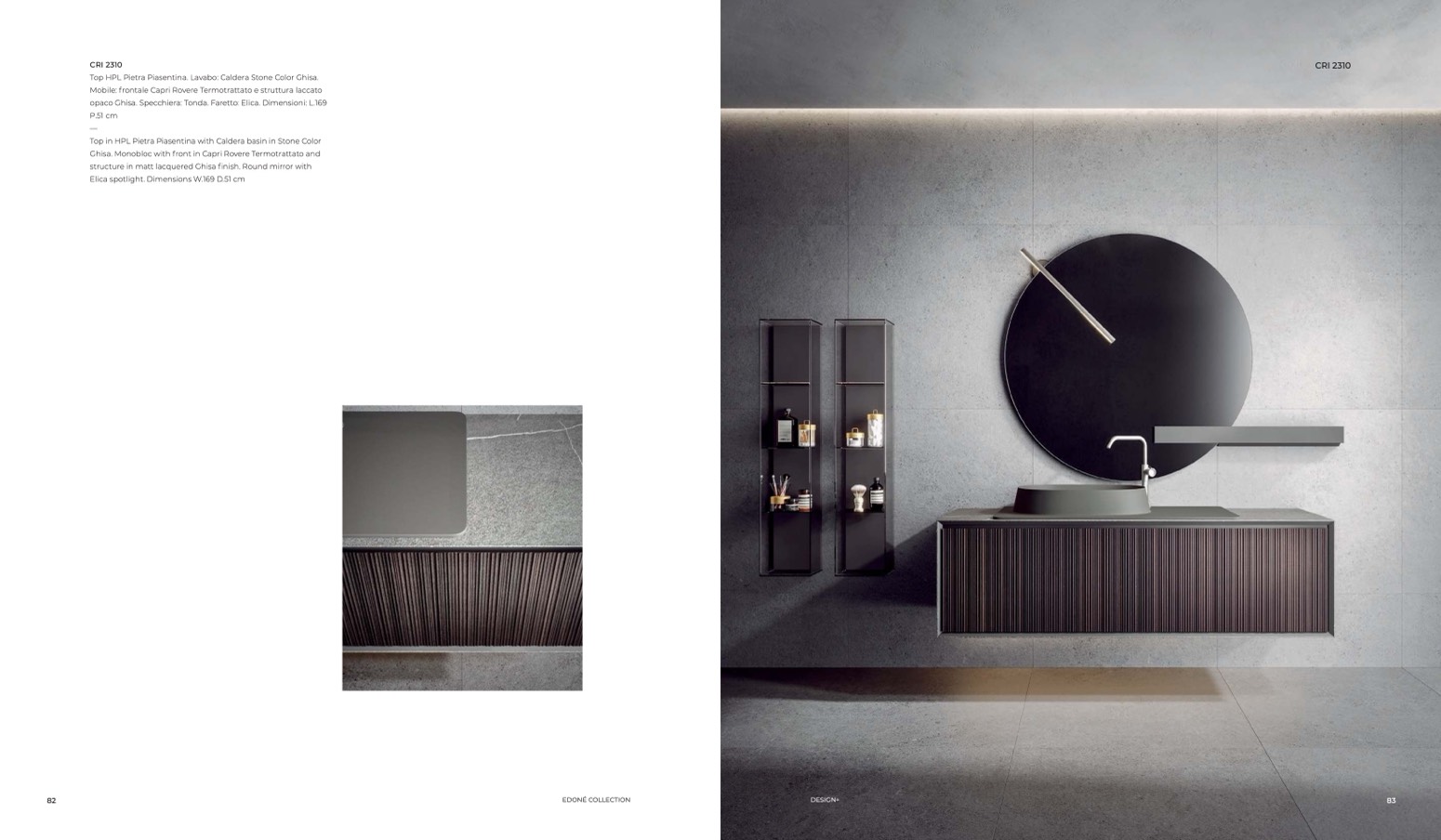opaco Ghisa. Specchiera: Tonda. Faretto: Elica. Dimensioni: L.169