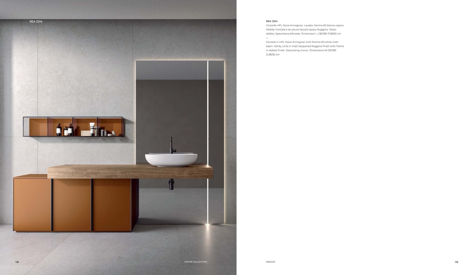 basin. Vanity units in matt lacquered Ruggine finish with frame