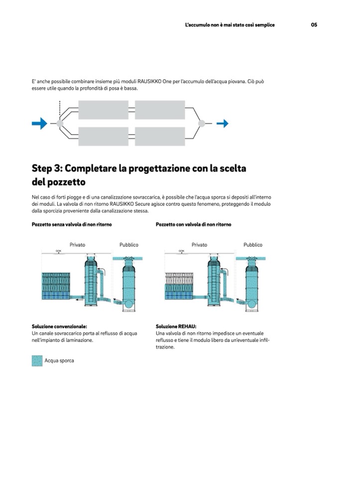 E‘ anche possibile combinare insieme più moduli RAUSIKKO One per l’accumulo dell’acqua piovana. Ciò può
