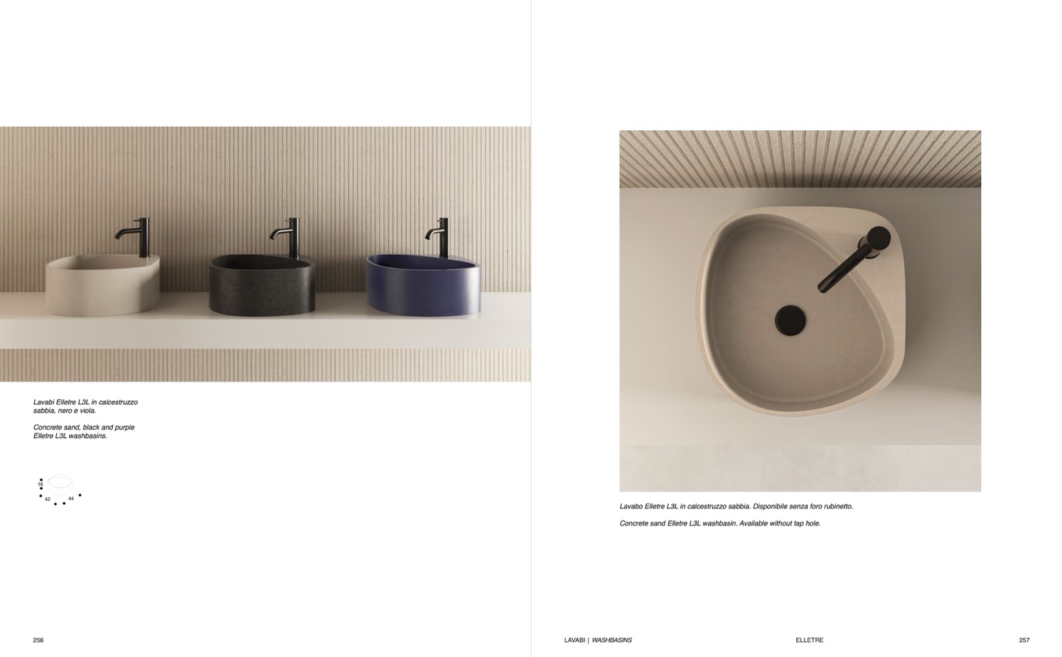 Concrete sand Elletre L3L washbasin. Available without tap hole.