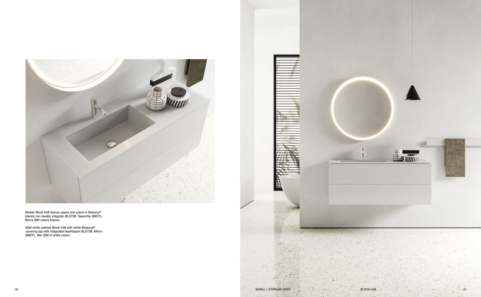 bianco con lavabo integrato BL5728. Specchio M80TL.