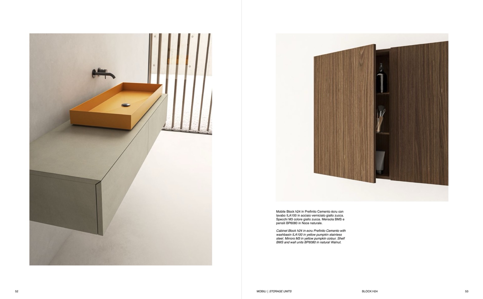 steel. Mirrors M3 in yellow pumpkin colour. Shelf