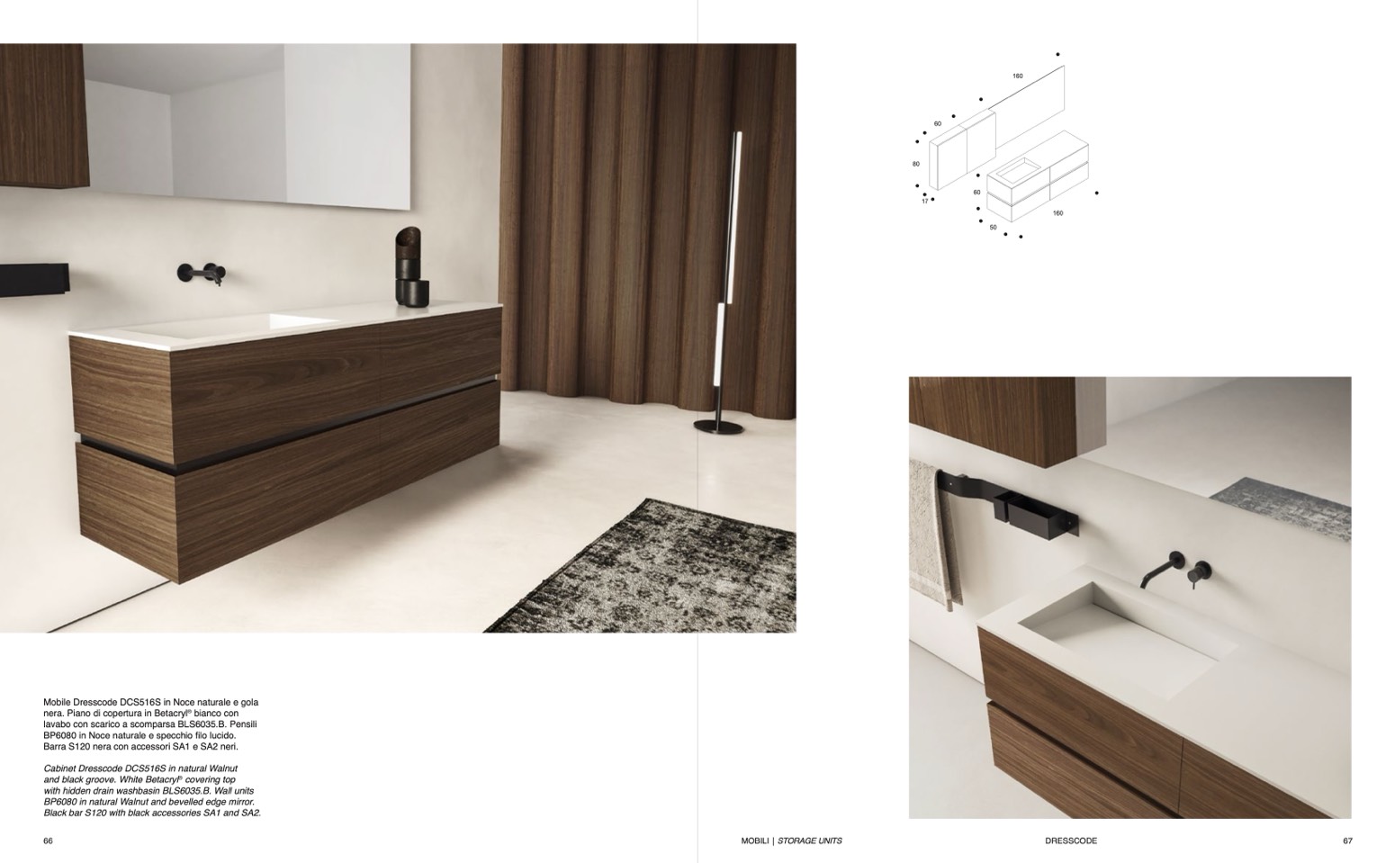 BP6080 in Noce naturale e specchio filo lucido.