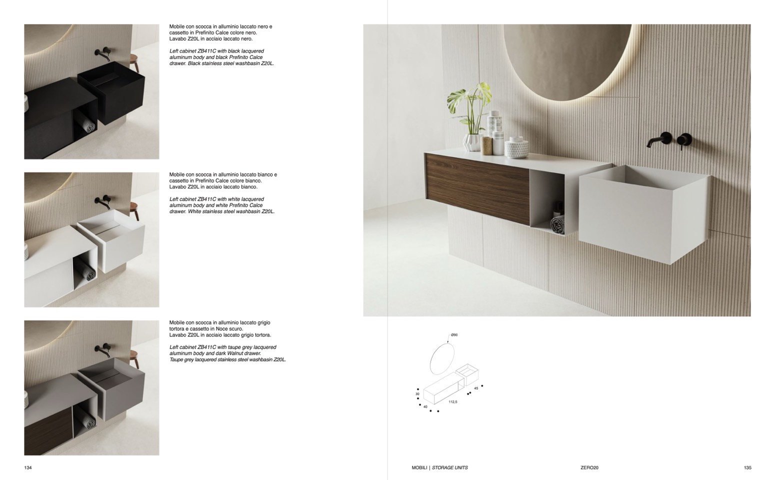 Lavabo Z20L in acciaio laccato grigio tortora.