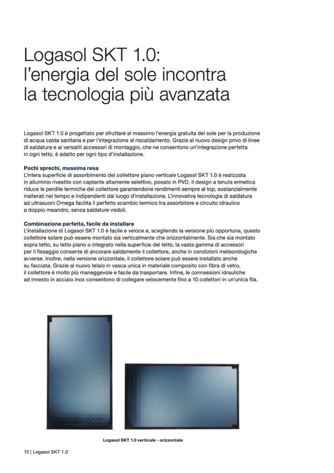 Logasol SKT 1.0 è progettato per sfruttare al massimo l’energia gratuita del sole per la produzione