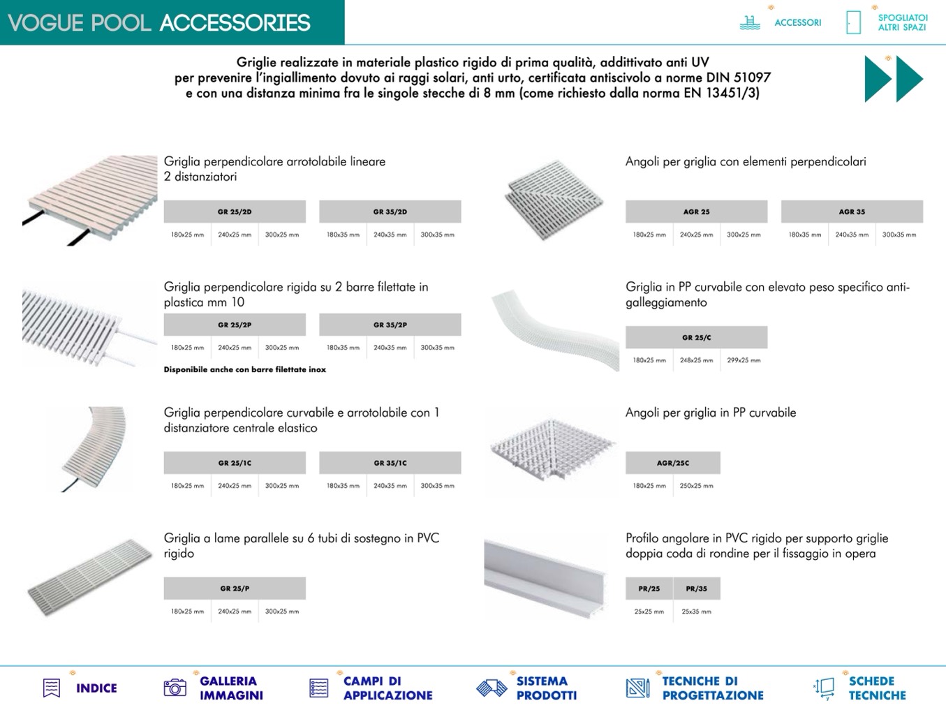 e con una distanza minima fra le singole stecche di 8 mm (come richiesto dalla norma EN 13451/3)