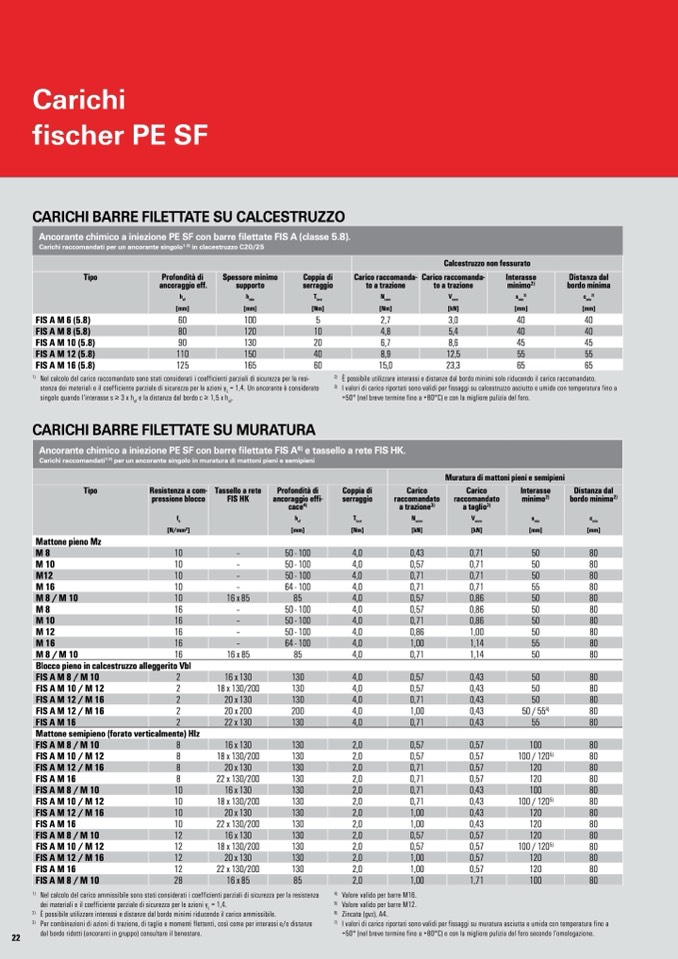 Ancorante chimico a iniezione PE SF con barre filettate FIS A (classe 5.8).