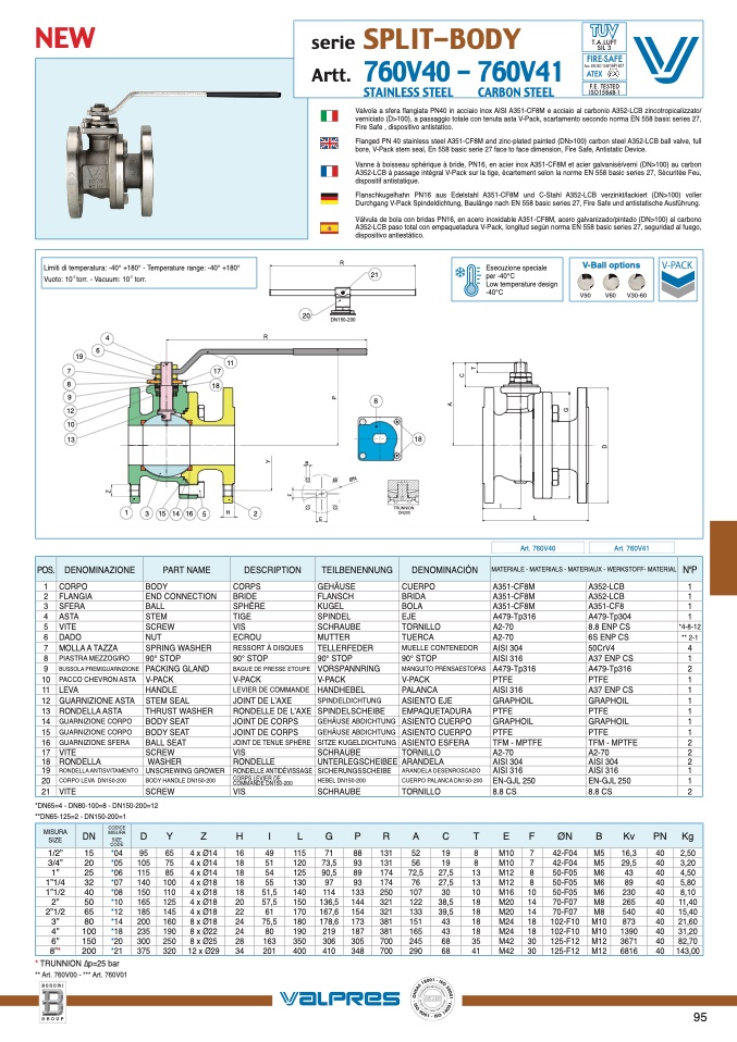 A352-LCB paso total con empaquetadura V-Pack, longitud según norma EN 558 basic series 27, seguridad al fuego,