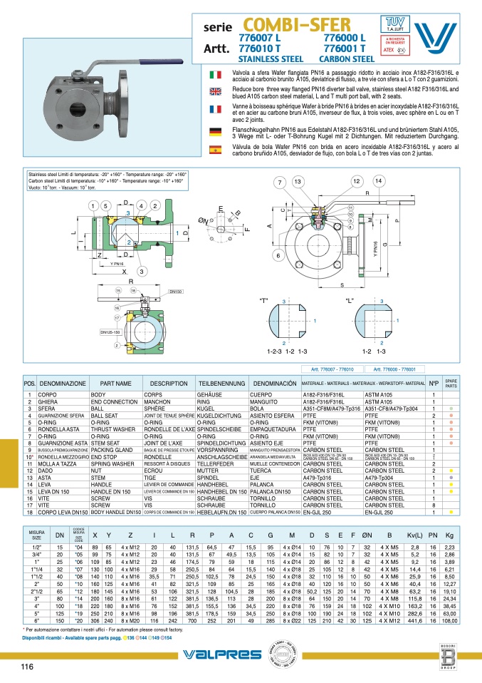 Carbon steel Limiti di temperatura: -10° +160° - Temperature range: -10° +160°