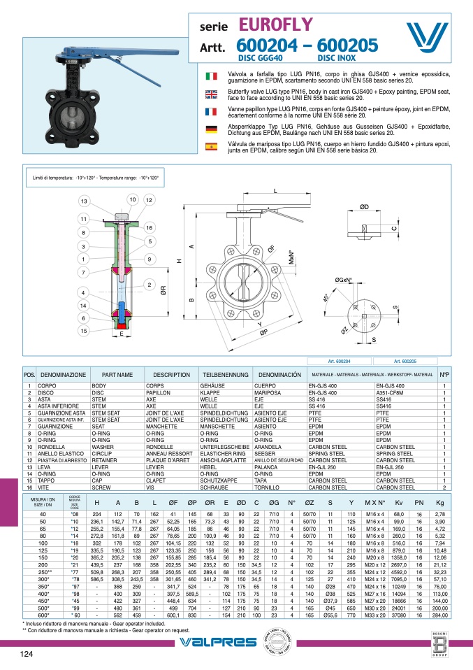 Limiti di temperatura: -10°+120° - Temperature range: -10°+120°