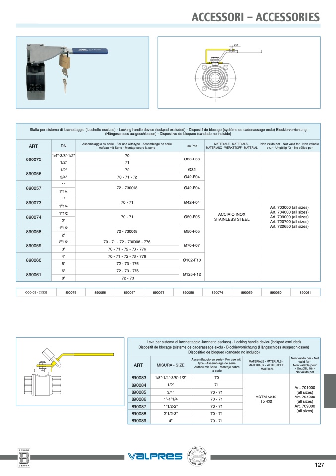 Staffa per sistema di lucchettaggio (lucchetto escluso) - Locking handle device (lockpad excluded) - Dispositif de blocage (système de cadenassage exclu) Blockiervorrichtung
