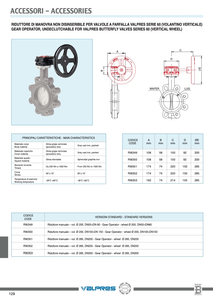 GEAR OPERATOR, UNDECLUTCHABLE FOR VALPRES BUTTERFLY VALVES SERIES 60 (VERTICAL WHEEL)