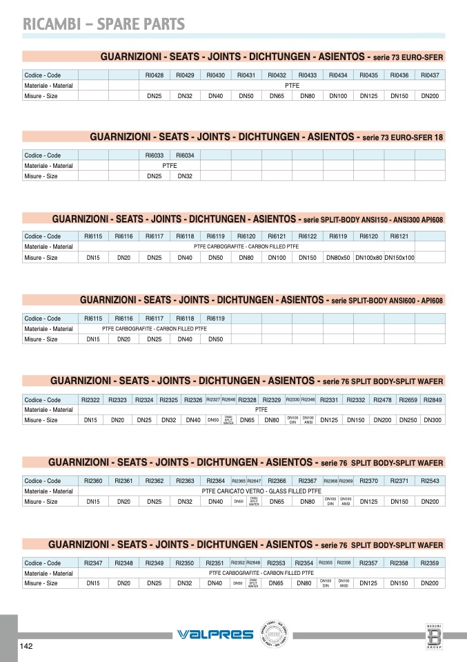 GUARNIZIONI - SEATS - JOINTS - DICHTUNGEN - ASIENTOS - serie 76 SPLIT BODY-SPLIT WAFER