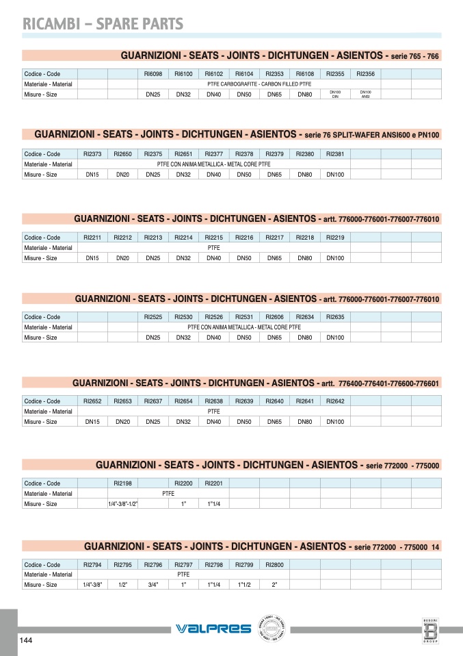 GUARNIZIONI - SEATS - JOINTS - DICHTUNGEN - ASIENTOS - serie 772000 - 775000 14