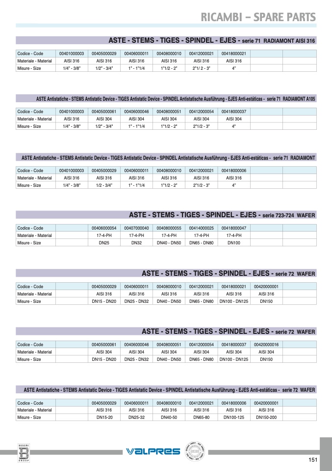 ASTE - STEMS - TIGES - SPINDEL - EJES - serie 71 RADIAMONT AISI 316