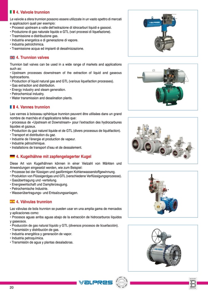 Le valvole a sfera trunnion possono essere utilizzate in un vasto spettro di mercati