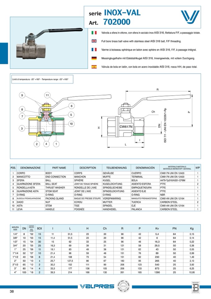 Limiti di temperatura: -20° +160° - Temperature range: -20° +160°