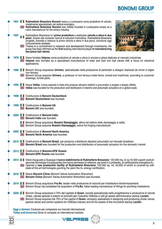 Bonomi Group acquisisce il 70% del capitale di Quam, società specializzata nella progettazione e produzione di valvole