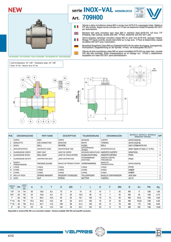 threading, high cyclicity, double seat with V-Pack, elastomer and ISO 5211 pad.