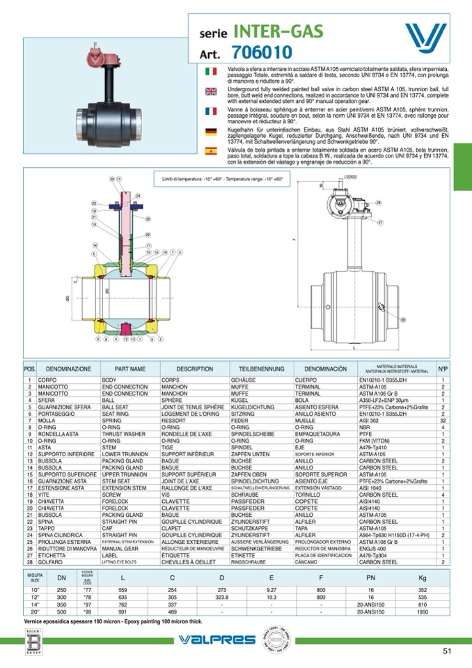 Underground fully welded painted ball valve in carbon steel ASTM A 105, trunnion ball, full