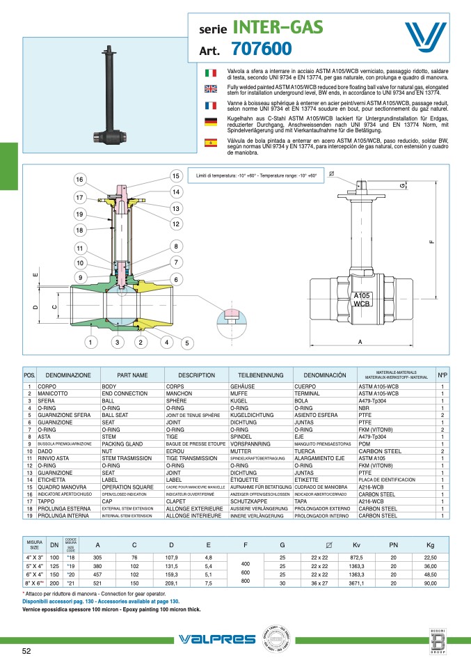 selon norme UNI 9734 et EN 13774 soudure en bout, pour sectionnement du gaz naturel.