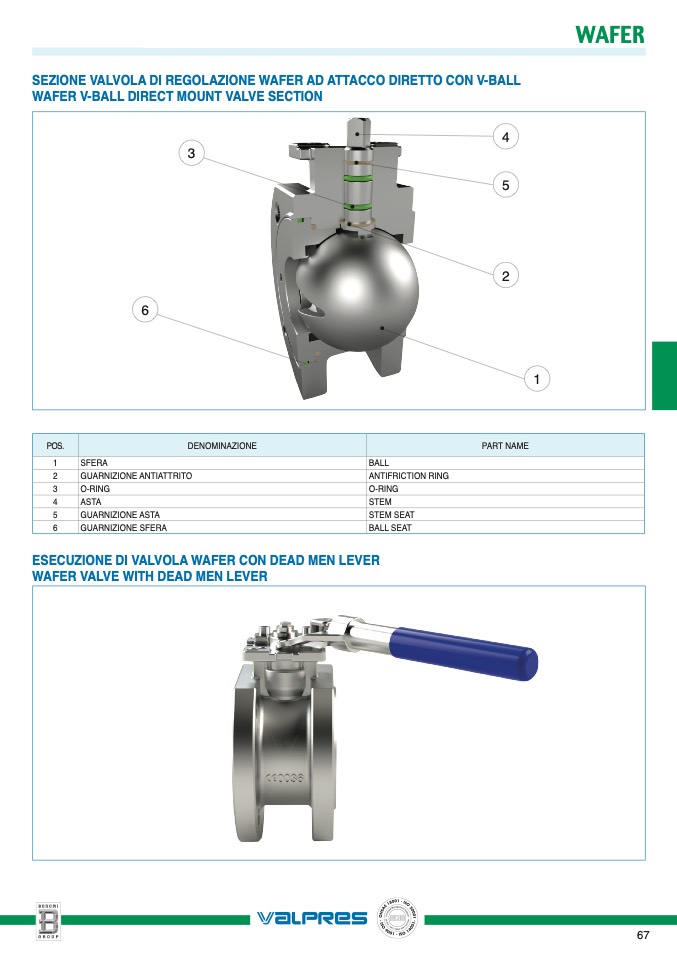 SEZIONE VALVOLA DI REGOLAZIONE WAFER AD ATTACCO DIRETTO CON V-BALL