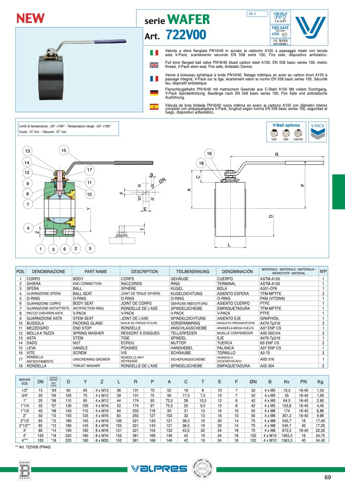 Limiti di temperatura: -20° +180° - Temperature range: -20° +180°