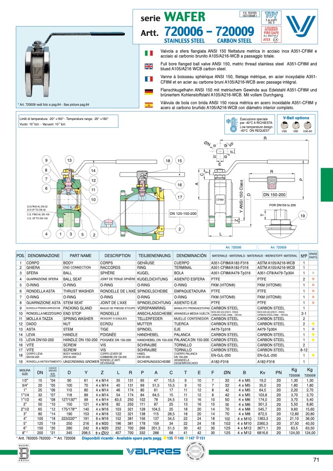Limiti di temperatura: -20° +160° - Temperature range: -20° +160°