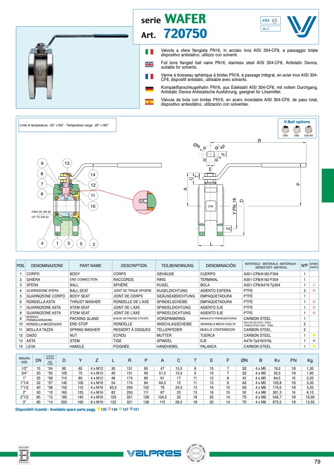 Limiti di temperatura: -20° +160° - Temperature range: -20° +160°