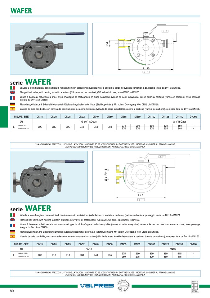 Valvola a sfera flangiata, con camicia di riscaldamento in acciaio inox (valvola inox) o acciaio al carbonio (valvola carbonio), a passaggio totale da DN15 a DN150.