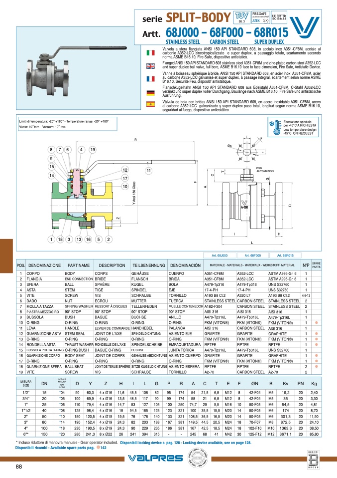 norma ASME B16.10, Fire Safe, dispositivo antistatico.