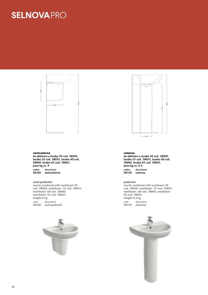 58060, lavabo 65 cod. 58065.