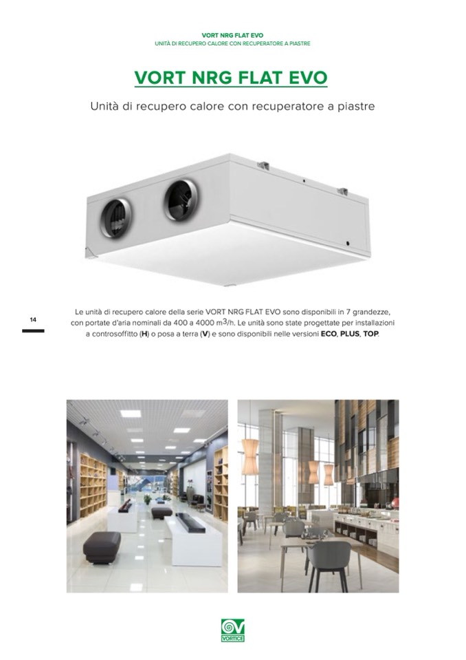 Le unità di recupero calore della serie VORT NRG FLAT EVO sono disponibili in 7 grandezze,