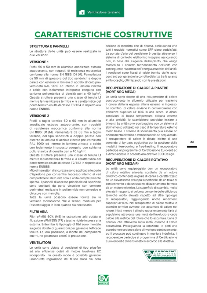 conforme alla norma EN 1886: D1 (M). Pannellatura
