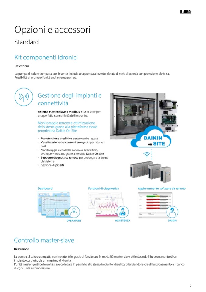 La pompa di calore compatta con Inverter è in grado di funzionare in modalità master-slave ottimizzando il funzionamento di un
